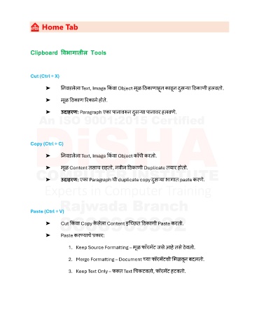 ➤ Cut कक ं वा Copy कलला Content इक्च्ित ठठकाणी Paste करतो.