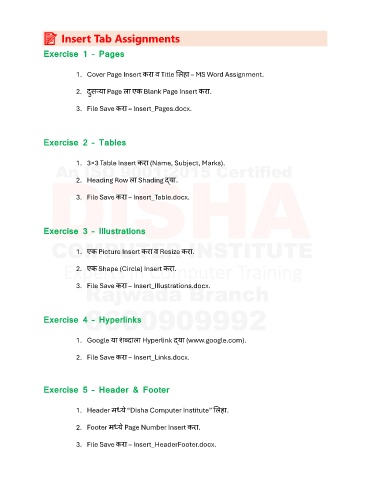 1. Header मध्य “Disha Computer Institute” मलहा.