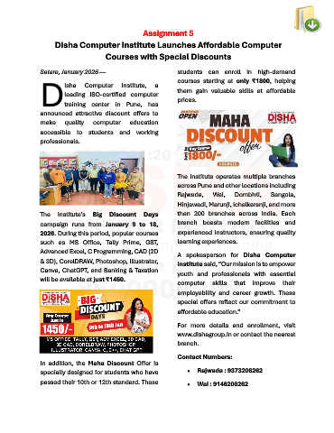 Advanced Excel, C Programming, CAD (2D A spokesperson for Disha Computer