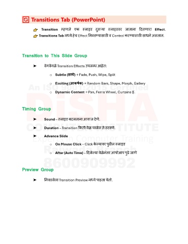 Transitions Tab मध्य हच Effect निवडण्यासाठी व Control करण्यासाठी साधिे असतात.