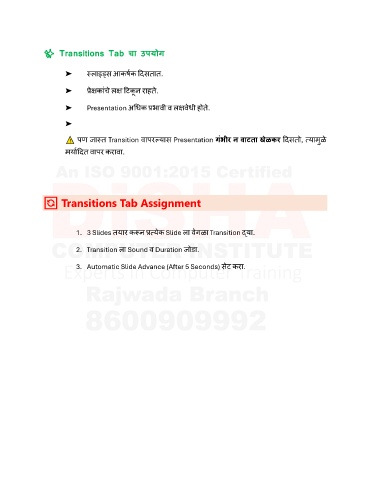 1. 3 Slides तयार कऱूि प्रत्यक Slide ला वेगळा Transition द्या.