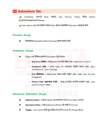 Animations Tab चा उपयोग कऱूि Slide जाथत आकषाक व Dynamic बिवता यतो.
