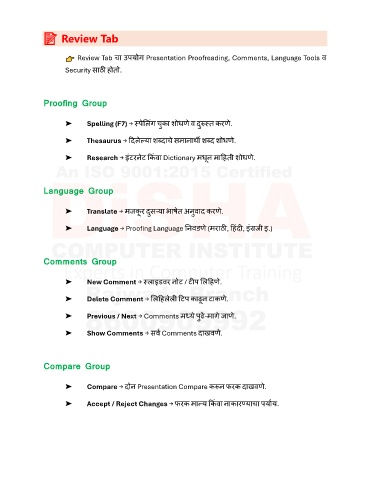 Review Tab चा उपयोग Presentation Proofreading, Comments, Language Tools व